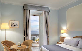 The hotel is the Hotel Mediteranneo Sorrento and seems ideal for what we are after - a relaxing, laid back yet stylish hotel with a pool and the option of exploring nearby places if we get bored of lounging around (unlikely looking at the surroundings). It's a 4-star hotel on the edge of a cliff, just 1km from the city centre with a free shuttle bus, although the walk sounds lovely, and free WiFi - so prepare for tweet updates! ;)