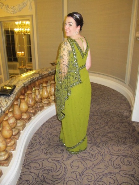 I did my own make-up as well using some of my new purchases from MAC and Nars. I used even more black eye-liner than usual right to the corners of my eyes to get more of an Asian look and added a little silver liquid liner but still did my usual smoky green eye-shadows to go with my Saree and add my own twist.