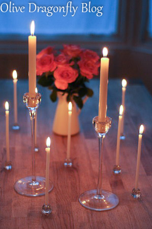 Sounds like a lovely evening! I love those small, but tall candles and holders, where did you get them from?